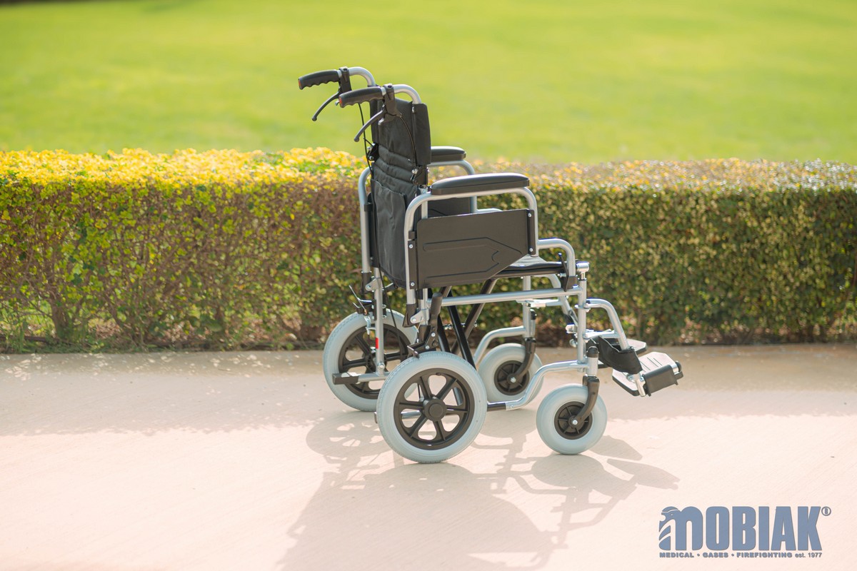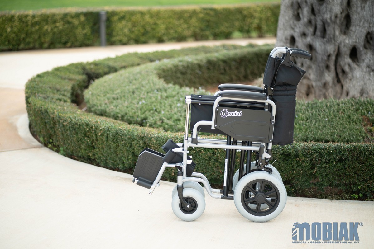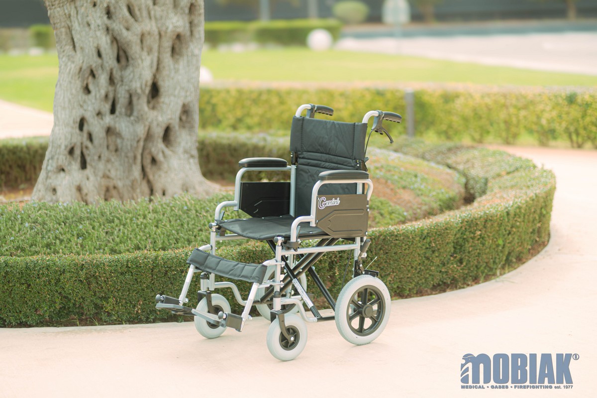 • Additionally, it can be converted to a Transport Wheelchair with medium wheels. (By purchasing 12’’Medium Wheels Ref:: 0811309) using the Quick Release mechanism (The medium wheels are not included in packaging)