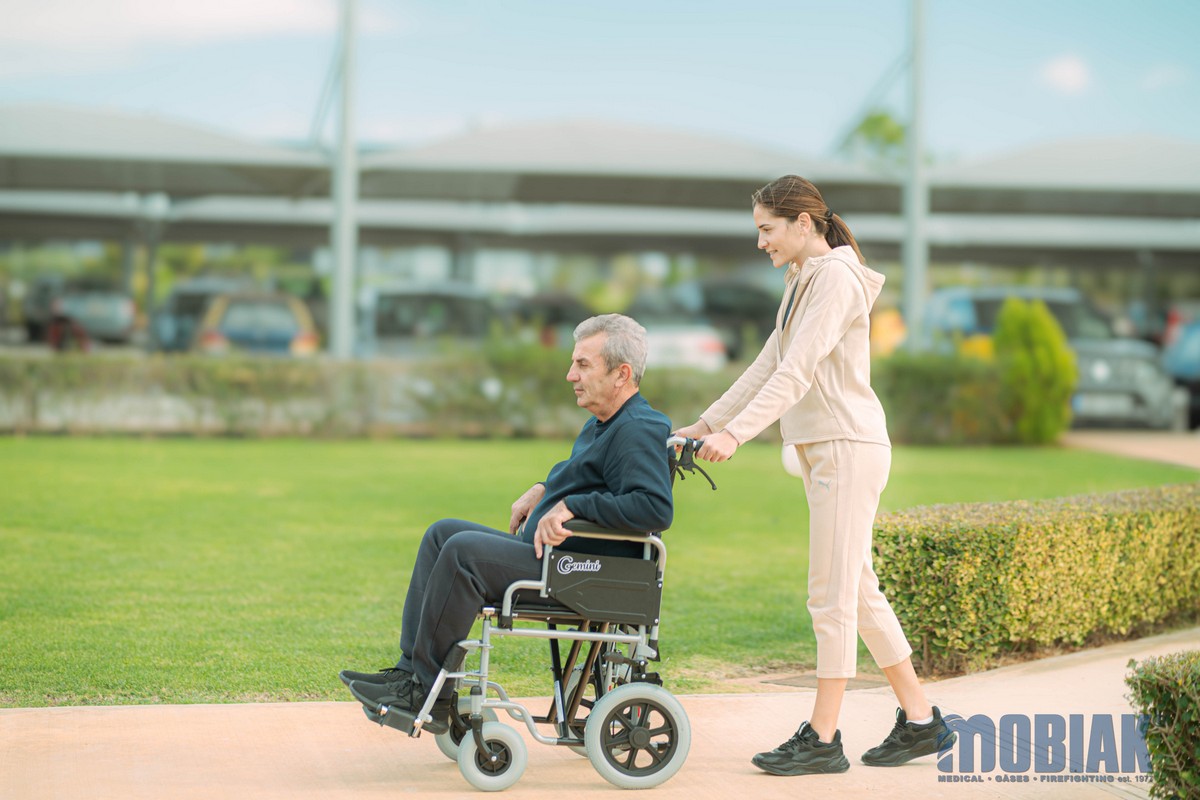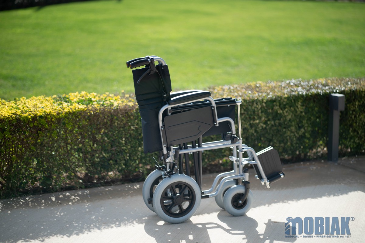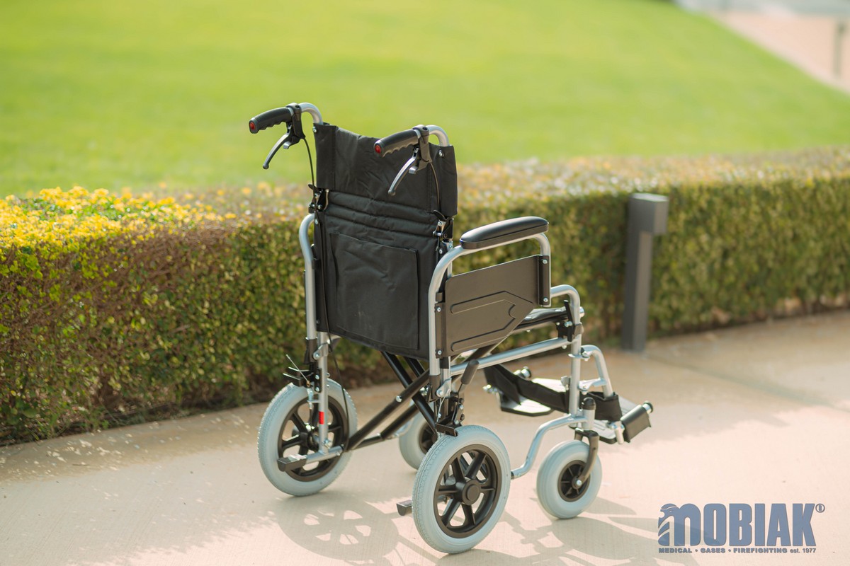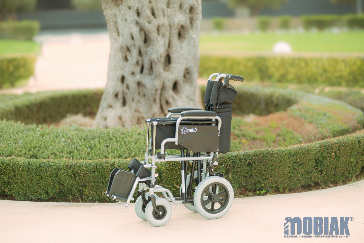 • Additionally, it can be converted to a Transport Wheelchair with medium wheels. (By purchasing 12’’Medium Wheels Ref:: 0811309) using the Quick Release mechanism (The medium wheels are not included in packaging)