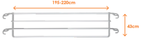 - It has 4 hooks with a spring of adjustable length: 195-220cm