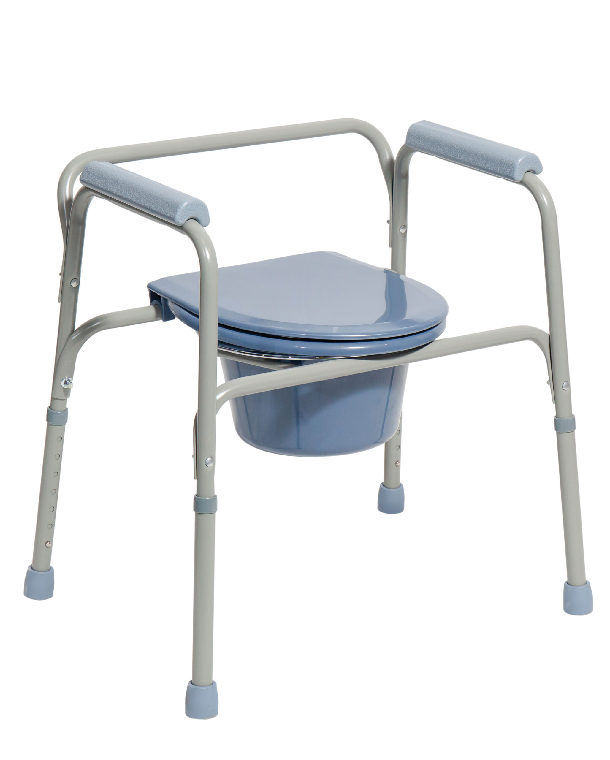 • Place directly on the toilet as a raised toilet seat by removing the bucket.