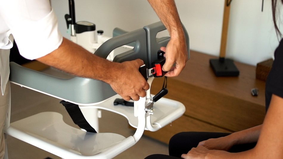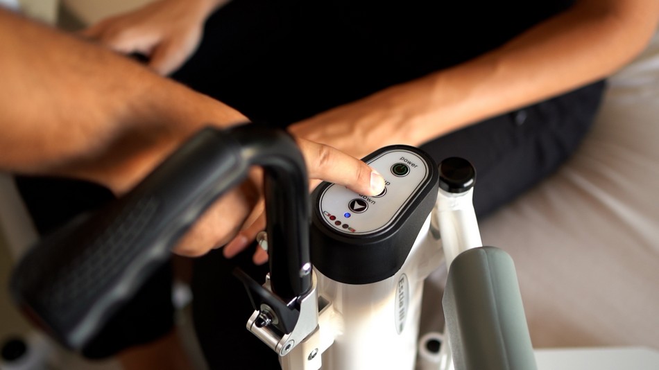 | WITH ELECTRIC LIFTING SYSTEM | The electric lifting system controls the lifting of the seat base from the vertical part of the frame. |