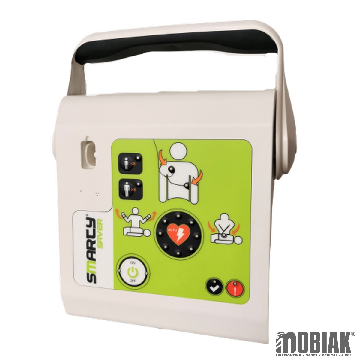Η εξαιρετικά ελαφριά φορητή συσκευή, χάρη στην αναδιπλούμενη λαβή της, τις μικρές διαστάσεις και την ωραία εμφάνισή της συμβάλλουν ώστε να εδραιωθεί ως το απόλυτο πρότυπο για την έγκαιρη απινίδωση σε μεγάλους δημόσιους χώρους.