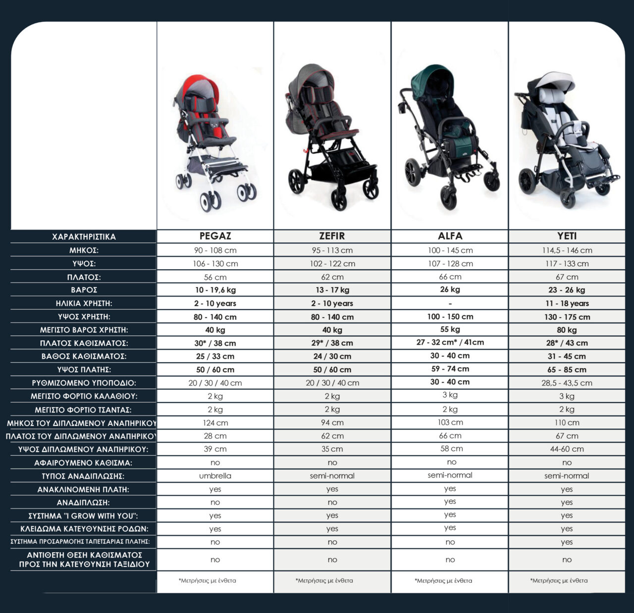 | Aναδιπλούμενο αναπηρικό (ΜxΠxΥ) | 110x66x50cm |